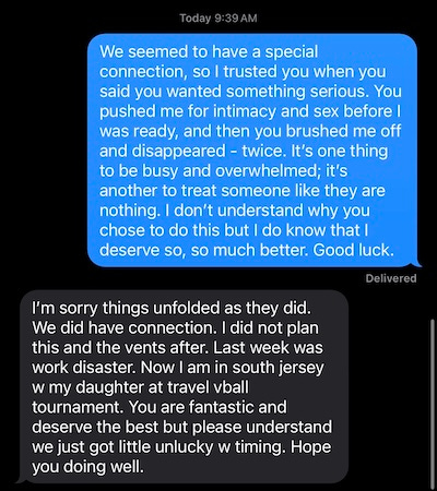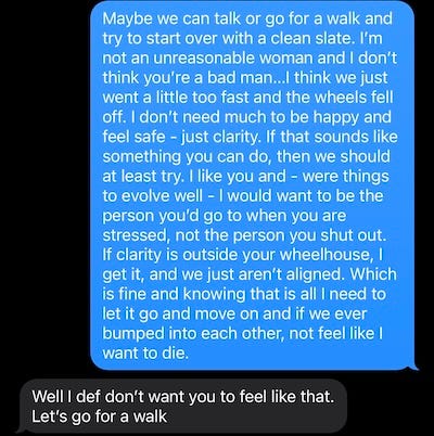 “I wouldn’t have introduced you to him yet. I wish you guys had gone slower. He’s really messed up from his ex,” our mutual friend said when I told her what happened. “But he’s a good guy so don’t stress about it. It’ll be okay.”